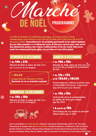 Bereits Ende September begannen die Vorbereitungen. Die Gemeinde Le Vésinet entschied sich dieses Jahr den Weihnachtsmarkt zu vergrößern, bzw. die örtlichen Vereine und gewerbliche Anbieter mit zuzulassen. Ebenso wurden die Öffnungszeiten erweitert, wie auf dem Flyer ersichtlich.
