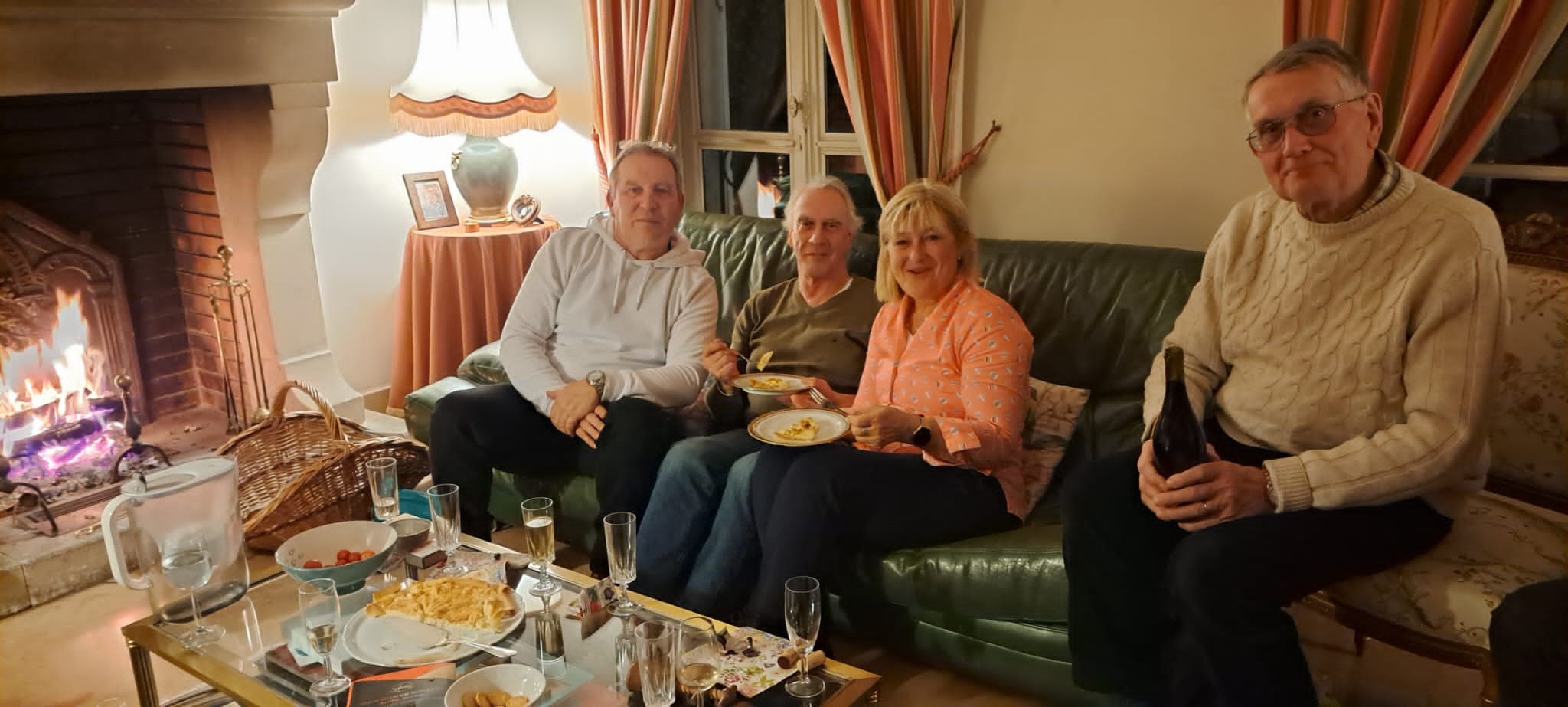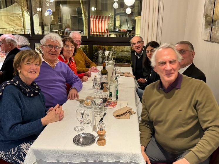 Um 18:00 Uhr endete dieser Weihnachtsmarkt 2023 und es wurde wieder alles aufgeräumt, verstaut und sauber gemacht. Die wenigen Restbestände eingeladen oder zu Edith für den Abverkauf gebracht. Zum Abschluss des Weihnachtsmarktes lud uns Präsidentin Anne-Marie Borderie zu einem kleinen Umtrunk vor dem offenen Kamin.